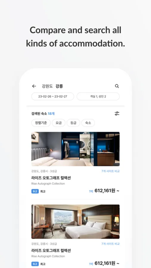 Compare the rates of more than 30 major travel agencies with the All-Stay app 'Hana' at once.
