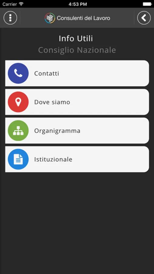 ● Consulta una completa sezione di info utili che ogni Consiglio Provinciale; puoi visualizzare orari, recapiti, indirizzi su uffici, modulistica, ecc.