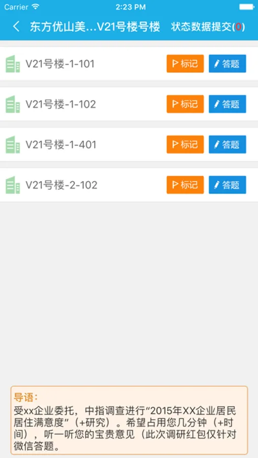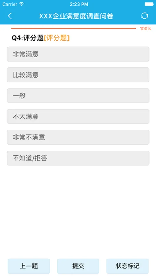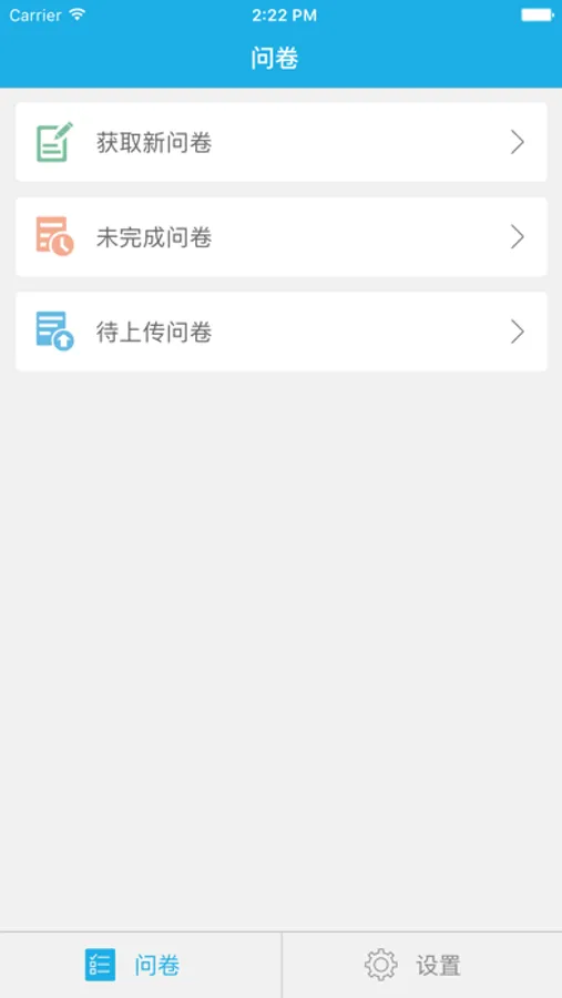 本应用主要用于问卷调查,收集反馈信息。主要功能有:1、问卷信息下载; 2、离线答卷; 3、答卷信息上传。本应用支持离线答题,极大的方便用户在无网络的情况下回答问卷。