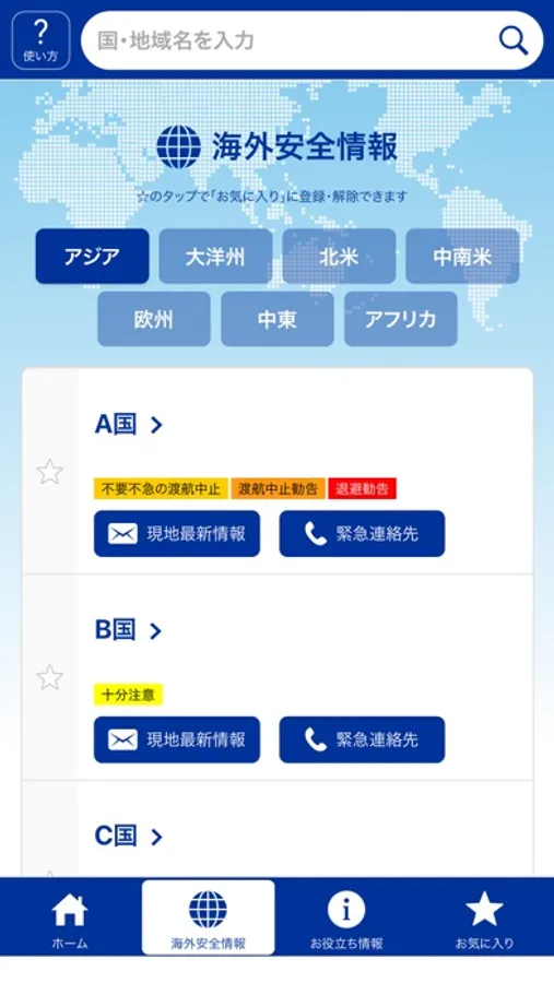 ※プッシュ通知ではお気に入りに登録する前までに発出された渡航情報を遡って受信することはできません。