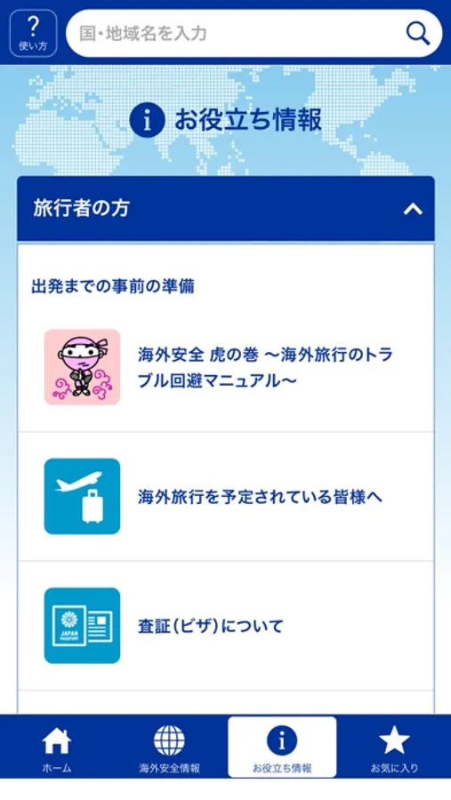「海外安全アプリ」は、海外にお住まいの方や海外旅行・出張中の方に、安全に係る情報をお届けするための外務省公式アプリです。