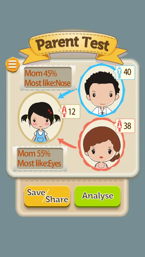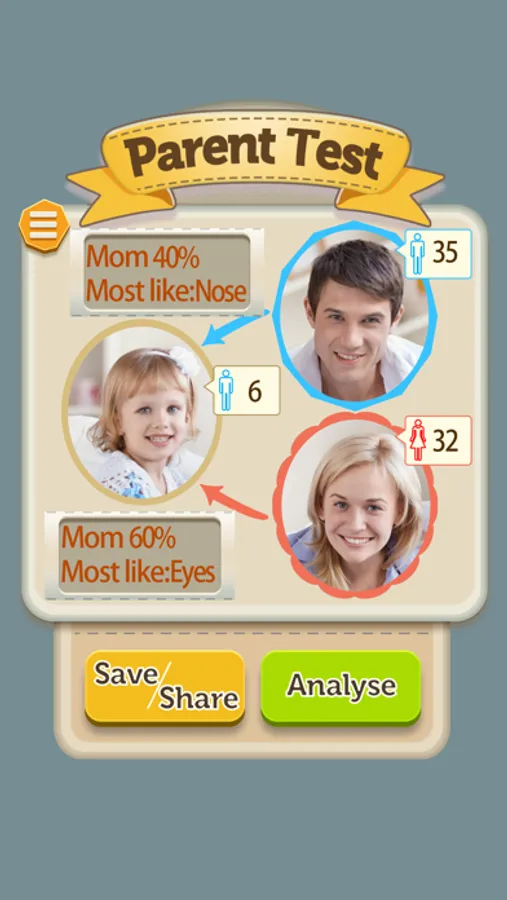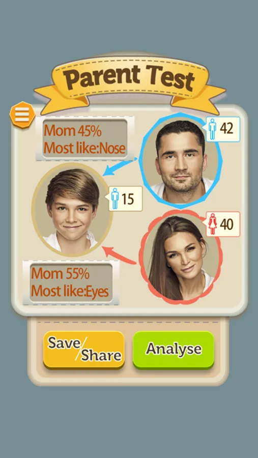 This application analyzes your photo and parents photos, extract facial features to analyze who you like!