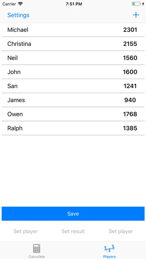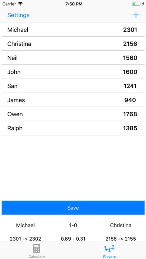 Maintain a ladder of your club's players. Swipe opponents to delete them. Add unlimited amount of opponents and save them to your phone memory.