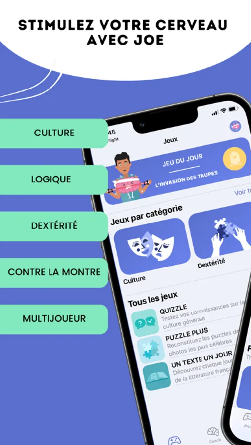 Ainsi votre coach cérébral JOE vous propose plus de 30 jeux de mémoire mis à jour tous les mois :