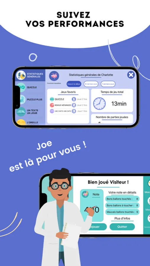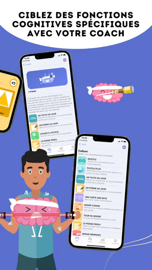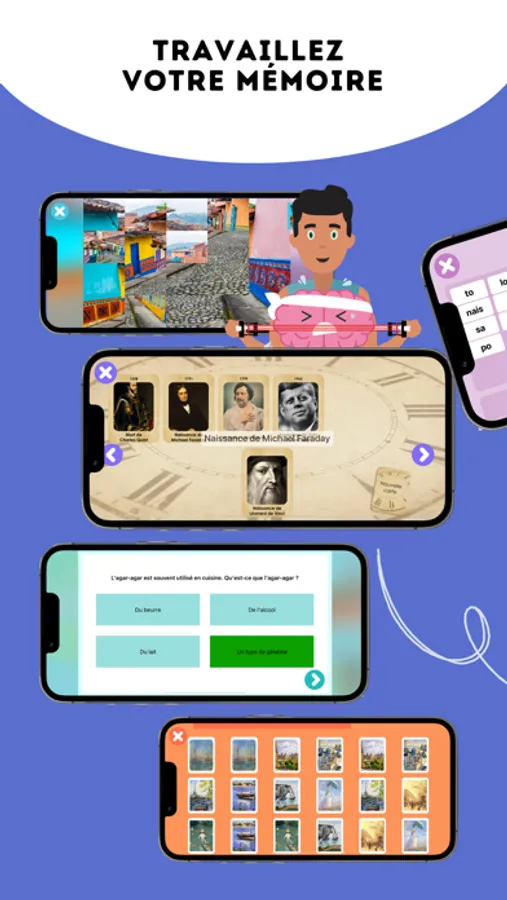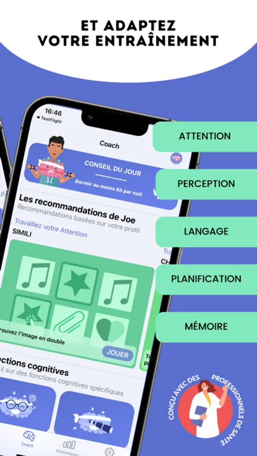Ces jeux ont été conçus avec des neuropsychologues pour construire un programme exhaustif d'un point de vue d'entraînement de la mémoire. Nous vous conseillons de réaliser des séances d'entraînement 3 fois par semaine, d'une durée de 30 minutes.
