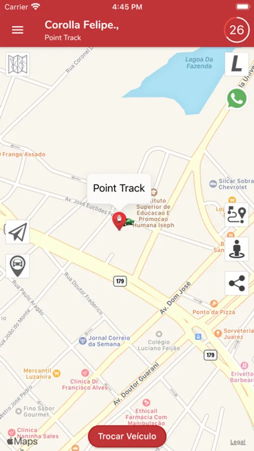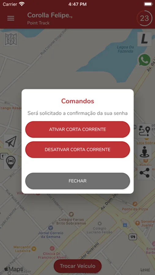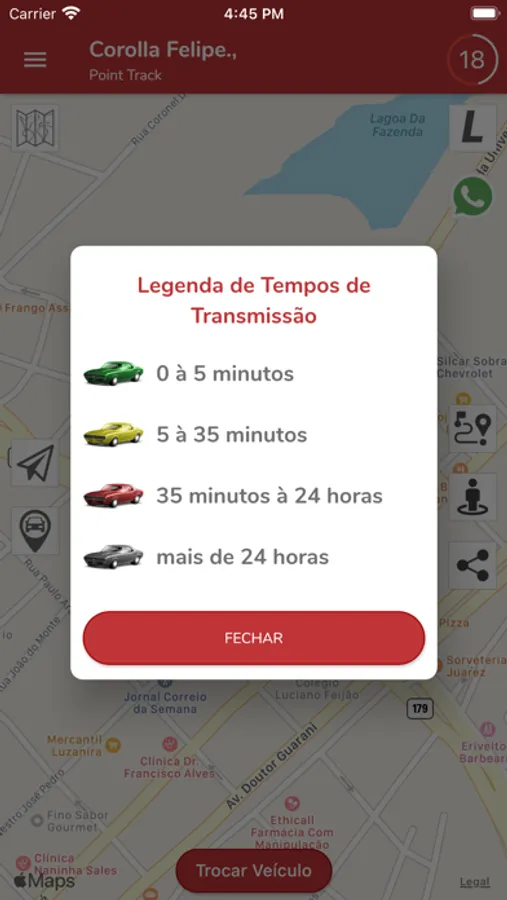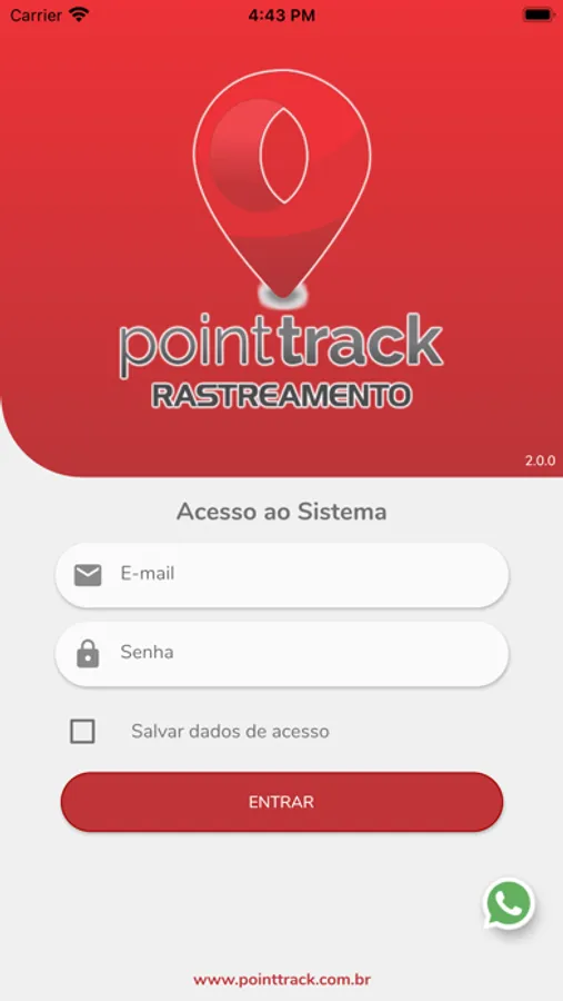 Aplicativo de monitoramento da empresa de rastreamento PointTrack