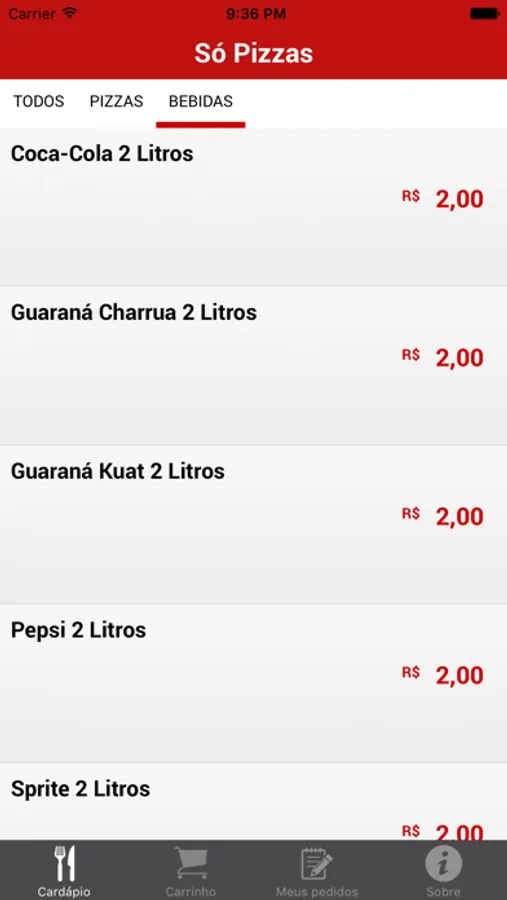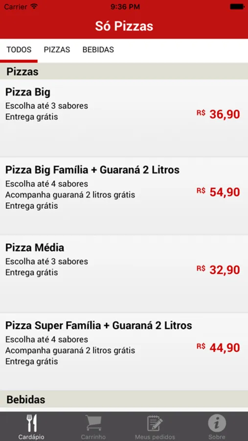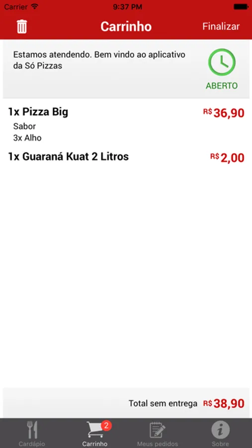 Bem vindo ao aplicativo da Só Pizzas.