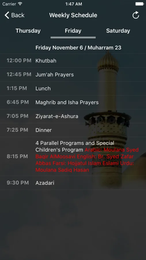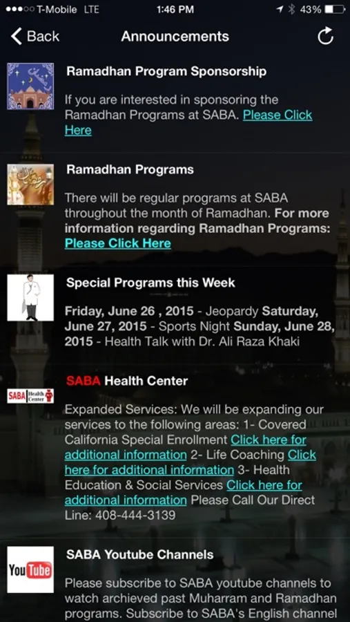 1- View weekly programs, and refresh them as needed. Programs are regularly updated on the Saba website. Users can refresh them on-demand, they get refreshed automatically on launch. Try refreshing on Wednesday or when you feel they are out-dated.