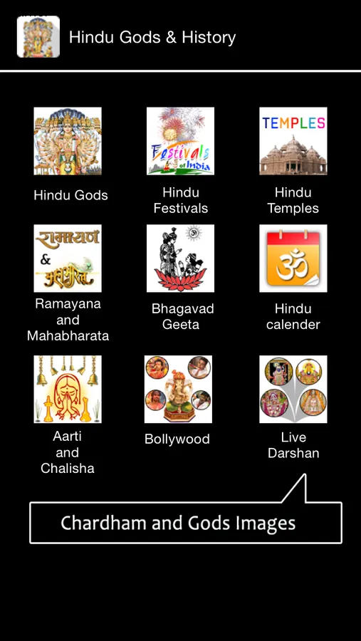 Hindu Gods And History is a great application for Hindu follower. This application will help you understand about many Gods detail, Hindu Festivals, Hindu temples. You can also see images for chardham and many images for Gods. It also includes Chalisa and Aarti. You can read and watch Ramayana and Mahabharata. There are basic message for Bhagvad Geeta has been explained.