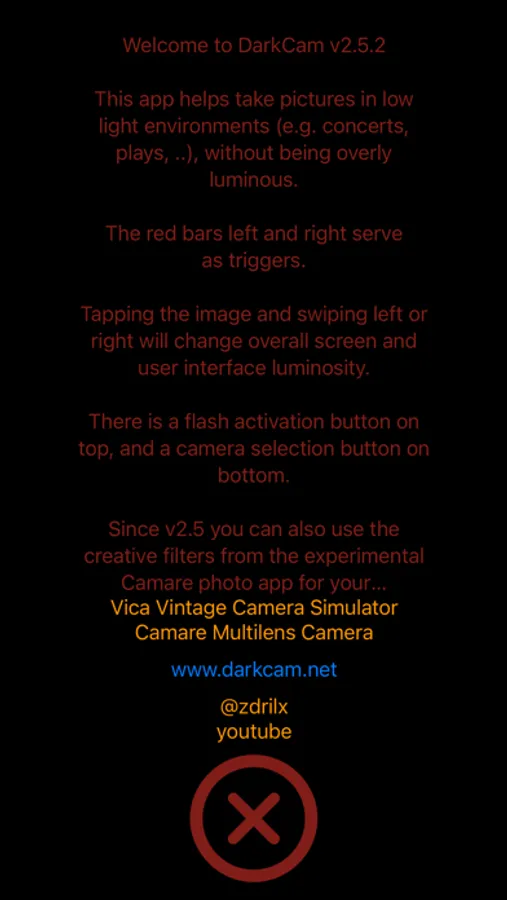 Thanks to your smartphone's screen, taking pictures at concerts, plays, ... often puts you under the spotlight. With DarkCam you are no longer the center of everyone's attention.