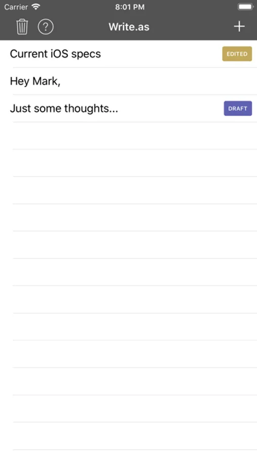 Use Write.as to share your thoughts, write a long tweet, make a blog post without the blog, or just keep notes for yourself — Write.as is simple and flexible enough to be your go-to writing app whenever an idea strikes, and always opens to a blank page to start writing on immediately.
