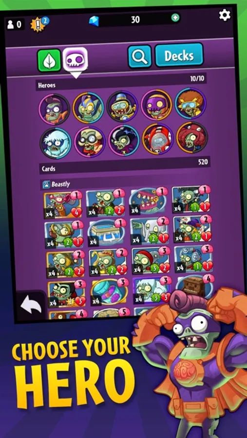 From the makers of Plants vs. Zombies 2 and Plants vs. Zombies Garden Warfare 2 comes the next epic battle between doom and bloom – Plants vs. Zombies Heroes. Build your team of heroes in this courageous collectible card game. Embark on a journey to discover new characters and confront mighty opponents along the way. And, for the first time ever on mobile, play as either plants or zombies. It’s the lawn of a new battle!