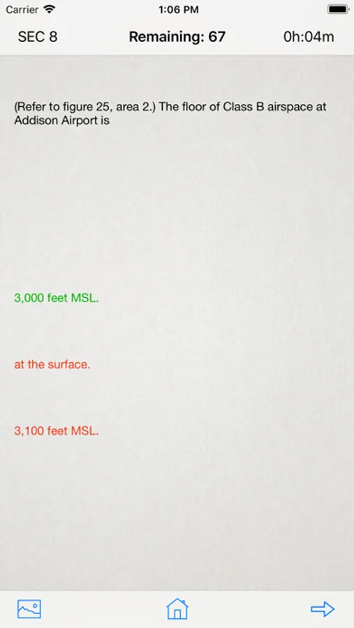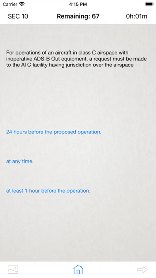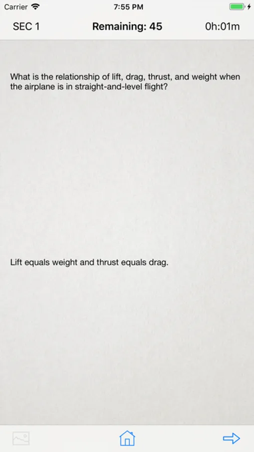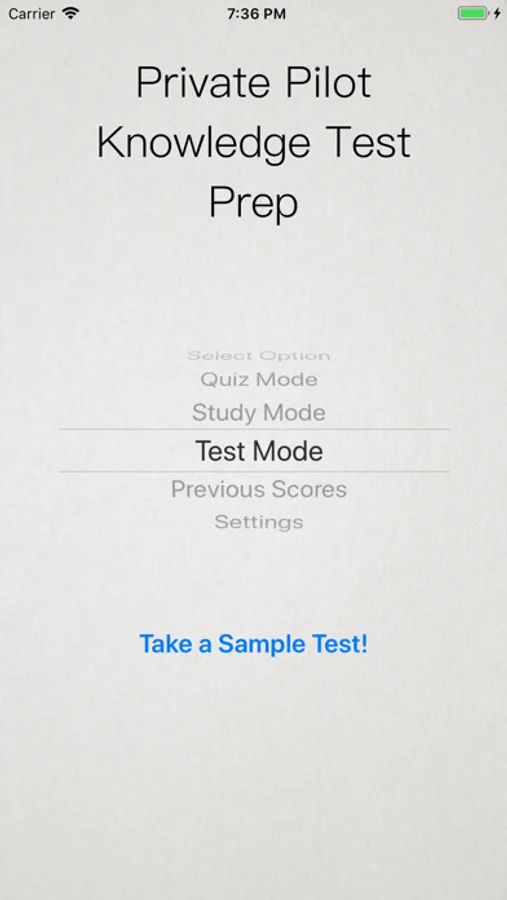 Test Mode - Simulates the test you are going to take at a FAA Knowledge Test Center. In this mode, you are asked 60 questions that are pulled from the entire question bank.