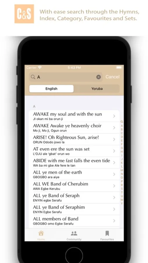 * Easily select and SEARCH THROUGH hundreds of HYMNS with EASE – By Index, Hymn’s or Category; all in Yoruba & English.