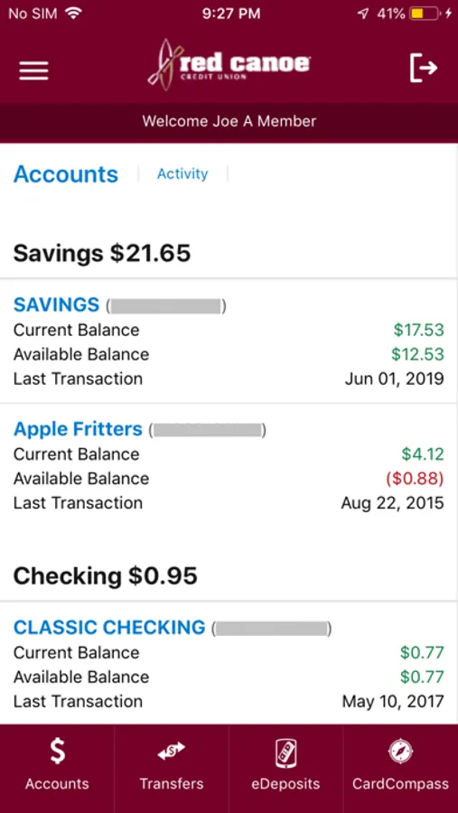 Red Canoe is bringing you Mobile Banking to your iPhone / iPod. You will have easy access to your accounts in Online Banking with this app. Benefits include: Balances - view account balances and transaction history. Transfers - transfer between your accounts or to another member. Bill Payer - pay bills and view recent payments. Mobile Deposit - use your phone to take a photo of a check and deposit it directly to your qualified account. Locations - get directions to Red Canoe branches, shared branch locations and ATMs. Mobile Banking is FREE and SECURE. Security includes the latest in SSL encryption and is backed by Online Banking secure sign-on.