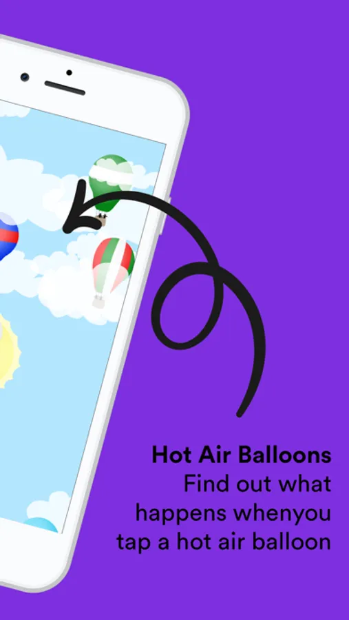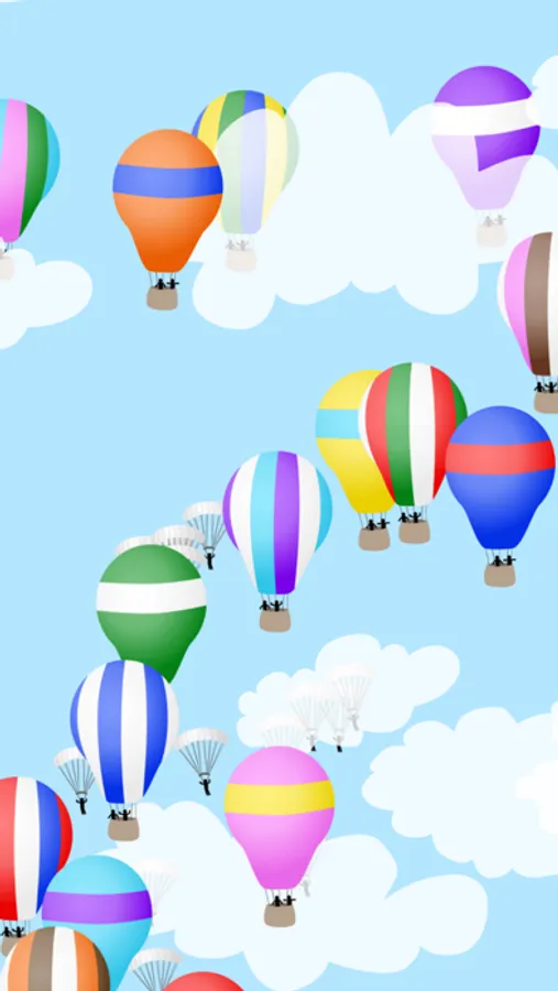 Hot Air Balloons for babies is focused on cause-and-effect interactions that are designed to appeal to babies. Hot air balloons float up the screen, and each time your baby touches one, and a skydiver jumps out with a parachute. Babies naturally love to shake things, and when your baby shakes your device, skydivers will jump out of all the hot air balloons at once!