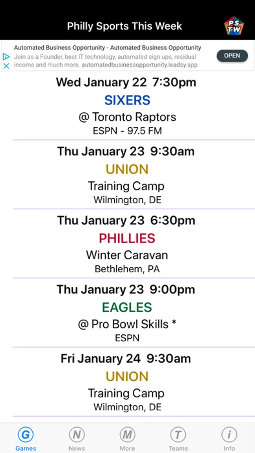 Philly Sports This Week lets you know when, where and who all the Philadelphia professional sports teams are playing for the current week and beyond. TV and Radio listings are included for the following teams: