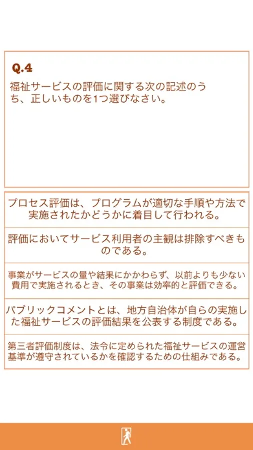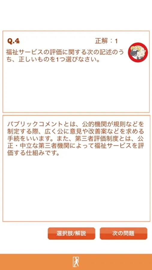 社会福祉士国家試験の解説付き問題が全て無料で!社会福祉士を目指すあなたの大きな味方です。「社会福祉士国試600問」は、その名の通り、過去の国家試験で出題された600問を収録したアプリです。もちろん、追加の有料問題や会員登録なども無く、全て無料です。基本はランダムで20問出題されますが、カテゴリ毎にトライすることも可能。更には、間違った問題のみ再トライできる機能や、試験結果の履歴保存、社会福祉士向けの各種お役立ち情報も。さあ、あなたもこのアプリを使ってソーシャルワーカーを目指して下さい!