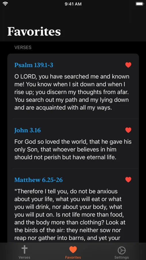 Hit "refresh" to display a new verse, add the current verse to your Favorites, or set up a daily reading reminder. Additionally, you may deepen your study by reading the full chapter for any scripture excerpt (iPhone only).