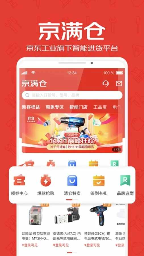 京满仓是京东工业旗下的一站式智能进货平台。其商品覆盖工业品领域电气、劳保、工具、机械部件等品类。