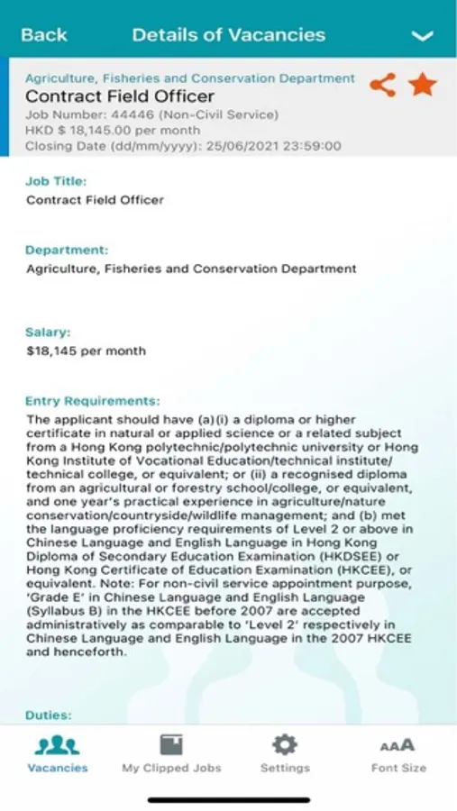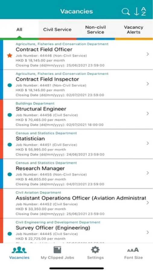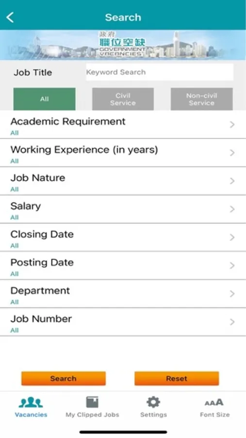 "Government Vacancies" mobile application is developed and maintained by Civil Service Bureau, the Government of the Hong Kong Special Administrative Region. The main functions include :