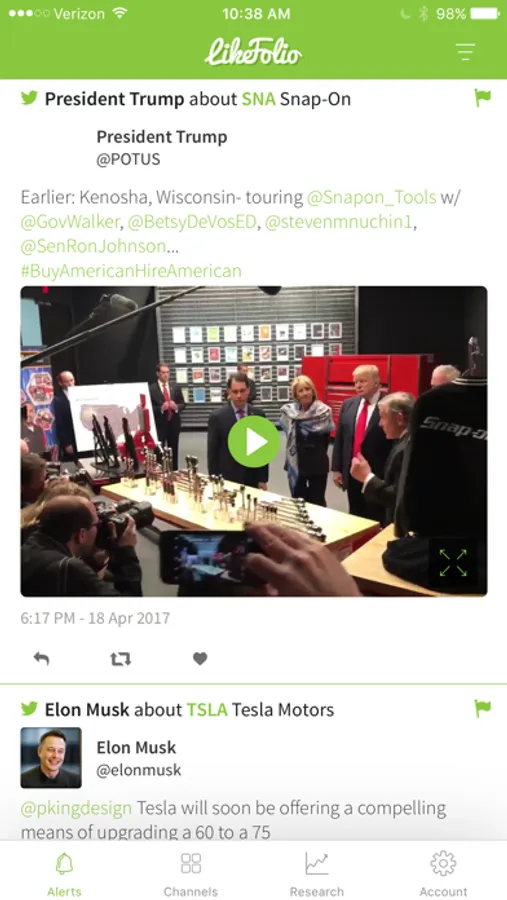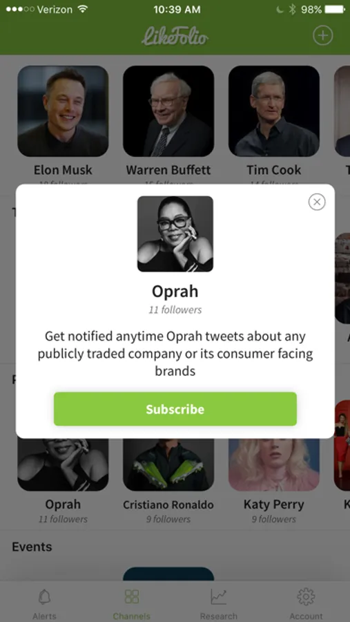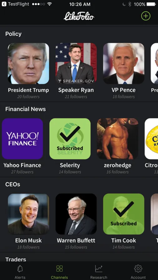 Subscribe to the channels that interest you most. From celebrities to politicians to famous traders, you get a market edge by being the first to know when powerful people tweet about public companies.
