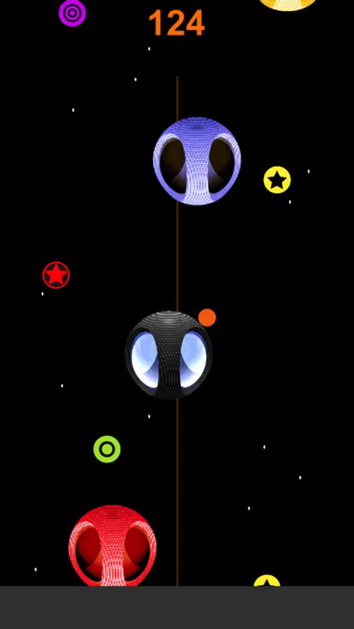 Bounce around and into as many stars and friendly orbs as possible. Crossing the middle line adds to the score