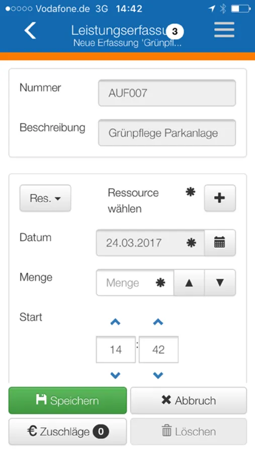 Die Erfassung der Rohleistungsdaten ergänzen Statistikfelder wie Objekt oder Leistungsart.