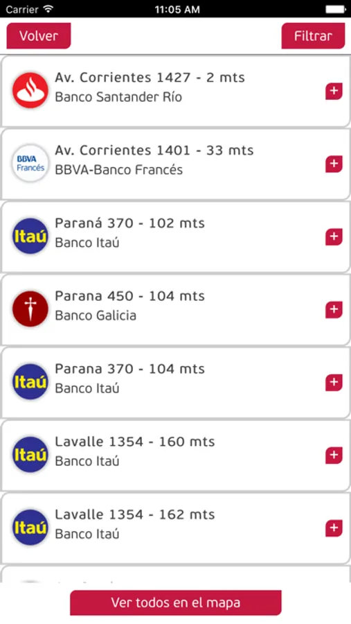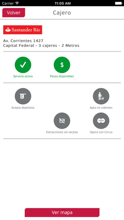 - Filtrar por características del cajero: si acepta depósitos, es apto para no videntes, operar dólares