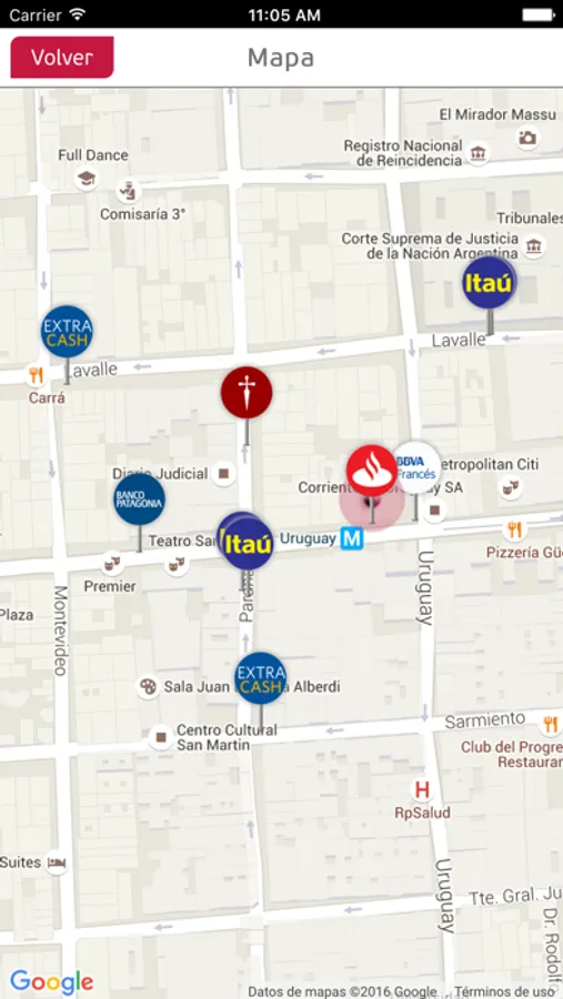 - Visualizar el recorrido en auto o a pie hasta el cajero seleccionado