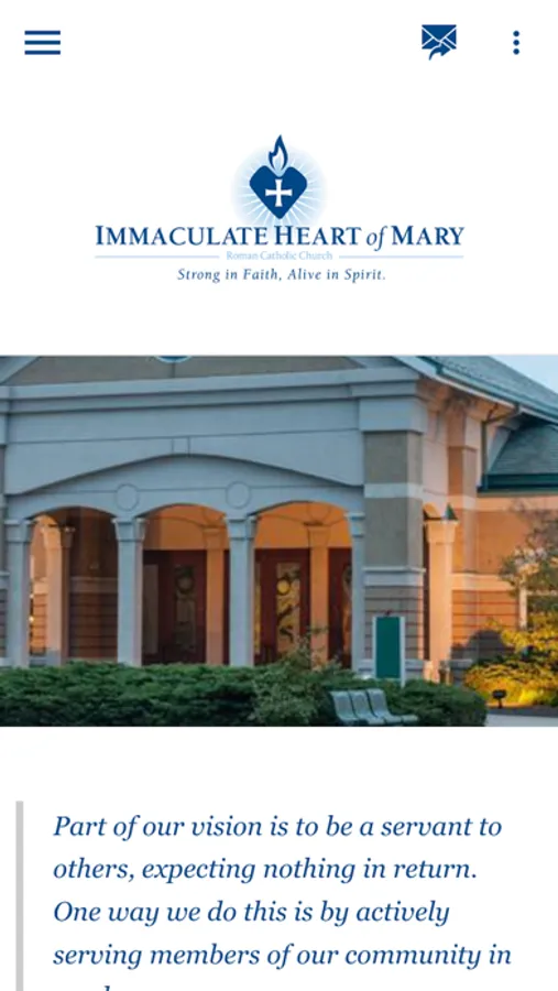 Welcome to the Immaculate Heart of Mary Parish Mobile App! We are a welcoming Catholic community centered in the Eucharist, striving to live and share the Good News and grow in discipleship with the Lord. Our app will help you quickly get information about our parish. It includes such items as Mass Times, Current Events, Bulletins, Prayers and other important information about our parish ministries. Here are some of the features that make our Parish Mobile App such a powerful tool for strengthening the bonds of our community:
