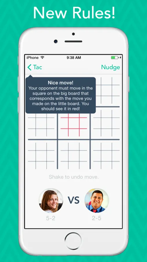 Challenge your Facebook buddies or square off against strangers. Take on an AI opponent and perfect your strategy. Make a mistake? Redo your last move and get back on the winning path! Use the in-game messaging feature to compare your record with friends, or just to send a friendly message! Track your wins and losses while earning Game Center achievements. Welcome to TAC—the new concept of Tic-tac-toe!