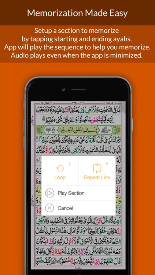 - Memorize sections - Hifz friendly mode to repeat lines or section multiple times
