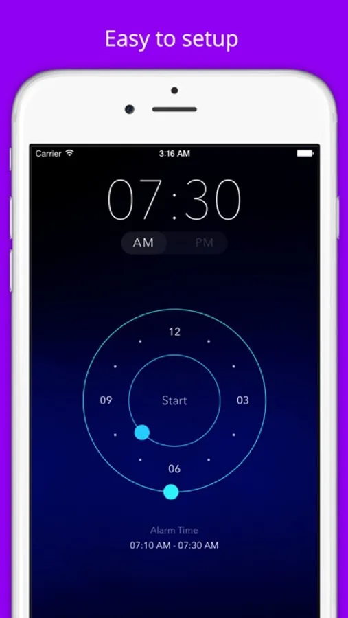 * Nite then finds the optimal time to wake you up during an approximately 30 minute window that ends at your set alarm time.