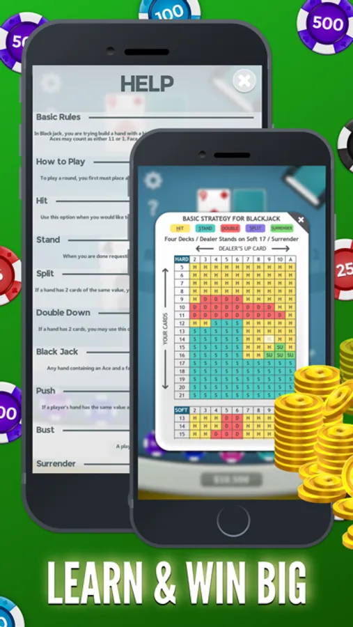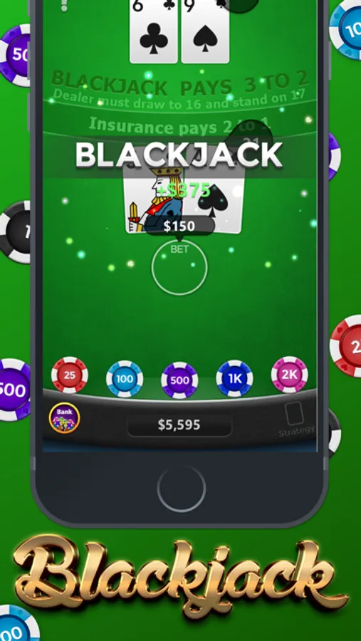 - Double Down, Splits, Insurance and Surrender for an authentic Blackjack experience.