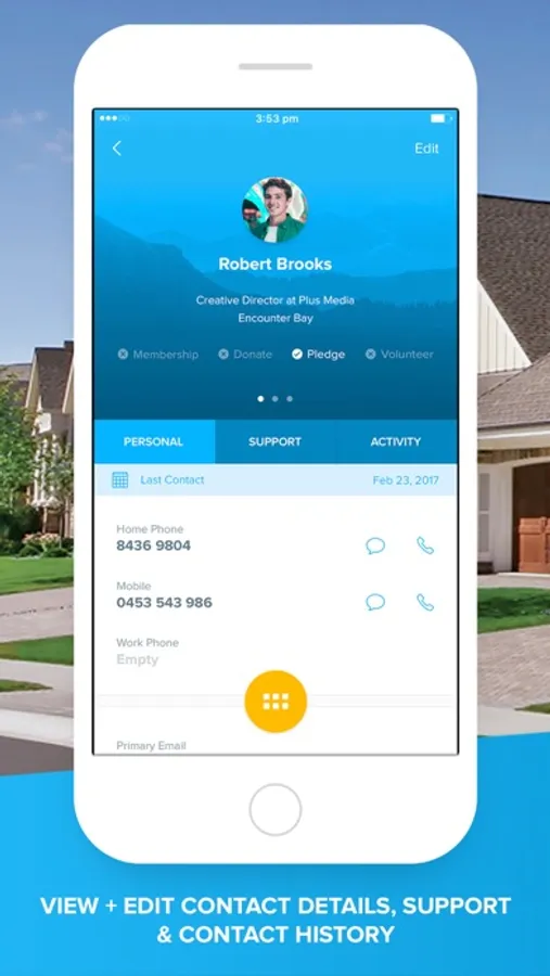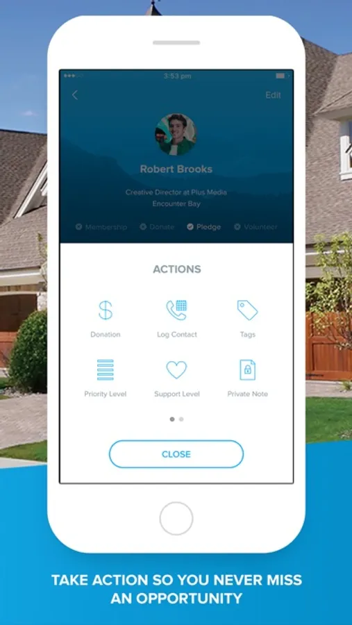 • Log contact, assign tags, change volunteer status, record donations, set support level, add private notes, conduct surveys and person to organization to a list.