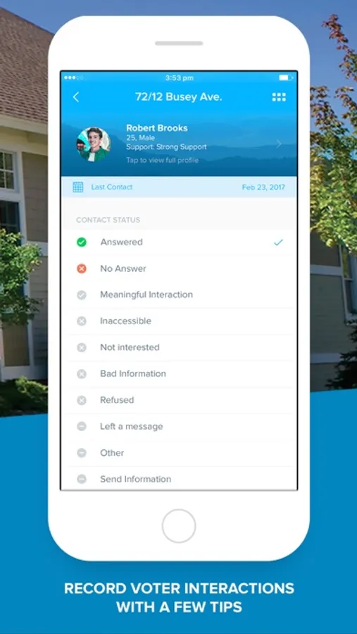 Log a discussion with someone, register their interest in volunteering or tag them with their key issues with a few taps. Your team will record accurate information about your constituents even when they’re not behind the PC.