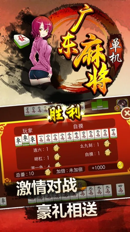 单机广东麻将采用广东珠三角地区普及最广、最为流行的打法,讲究鸡胡、平胡和爆胡,打法简单并且节奏很快。