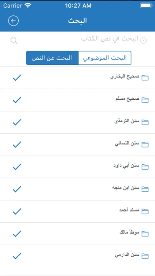 * البحث النصي داخل محتويات المكتبة بخيارات متعددة، للوصول بشكل سريع إلى المعلومات المطلوبة.