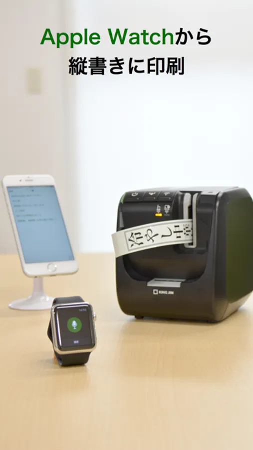 Apple Watchで音声入力した文字をテプラで印刷できます。