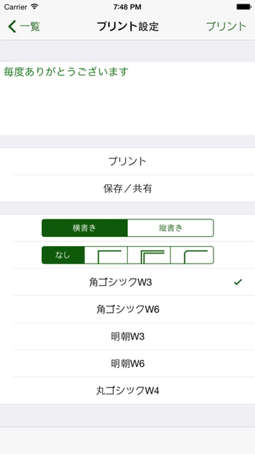 ・iPhoneで入力してい印刷した文字は履歴として保存されます。