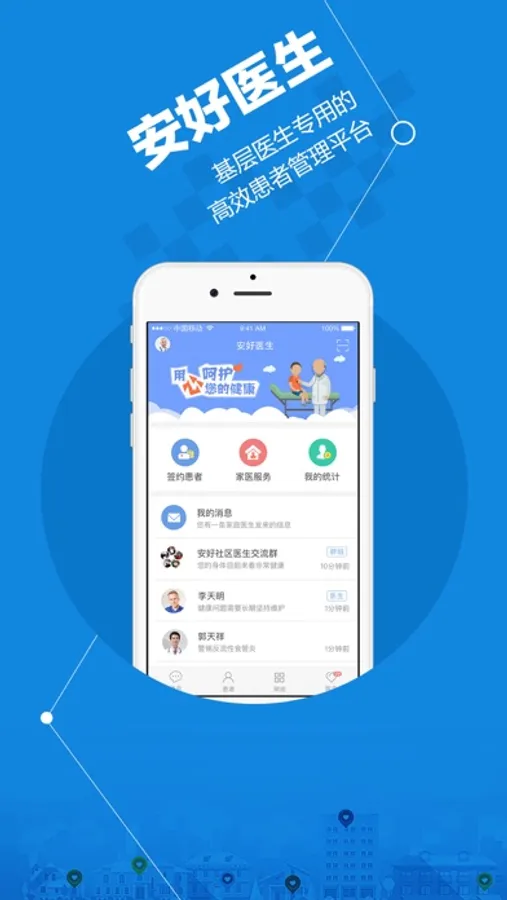 安好医生是一款面向签约及公卫服务的APP,为基层医生完成日常服务提供移动端应用。包含以下功能: