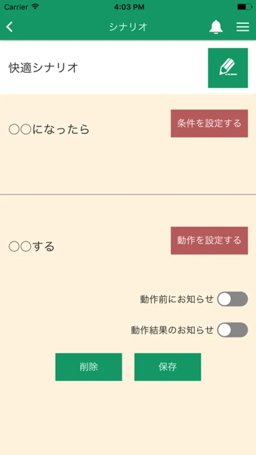 また、シナリオ機能を活用することで、宅内環境(温度や照度等)の変化に応じて、家電等を自動制御することも可能です。