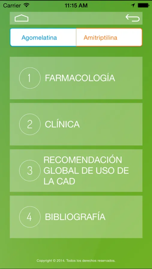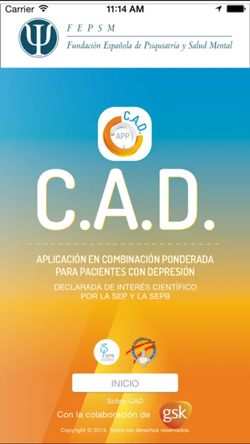 La App CAD pretende ofrecer una herramienta destinada a profesionales sanitarios, con el fin de comprobar de una manera cómoda y sencilla las características de las posibles combinaciones existentes dentro del arsenal terapéutico de antidepresivos. Una vez seleccionada la combinación deseada, la aplicación muestra información acerca de la farmacología, clínica, recomendación global de uso y bibliografía disponible.
