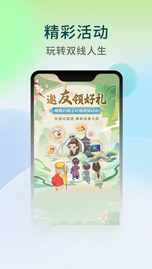 【精彩活动 玩转双线人生】全新线上精彩活动,邀请好友沉浸式角色扮演,以“老带新”、“新带新”壮大参与队伍,迪士尼门票、CCD相机、惊喜话费等你领!更有“小芽儿成长营”、“出趣玩”等特色线下活动报名。线上、线下齐参与,玩转你的休闲人生。