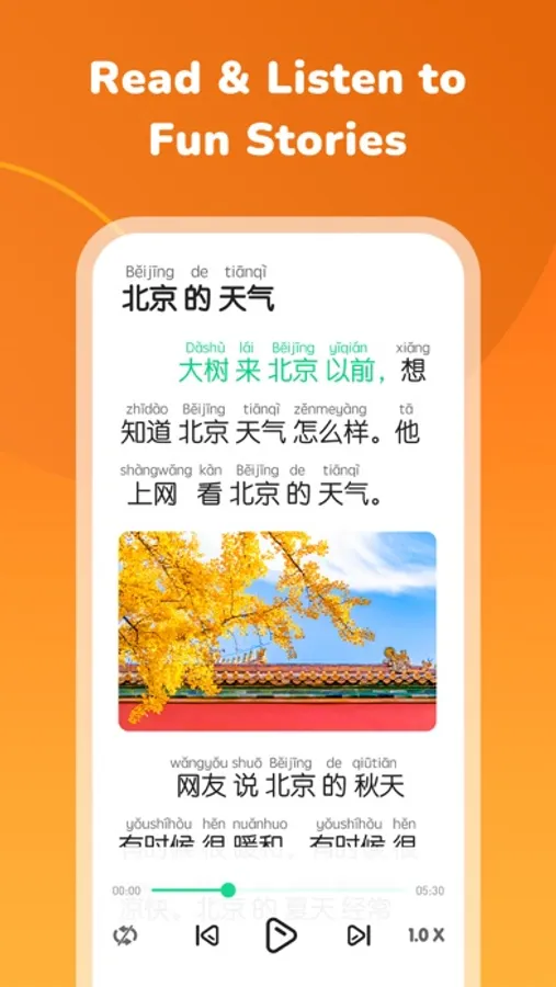 Designed in a fun and highly effective manner, HelloChinese helps you rapidly learn Mandarin Chinese from scratch to a conversational level. With HelloChinese, learners can "learn the Chinese language, explore Chinese culture" – you will not only learn Mandarin Chinese but also enjoy the process of delving into the culture intertwined with the language.