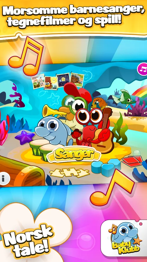 Kom og besøk den søte babydelfinen og Lobo, den morsomme hummeren, i den hemmelige undervannshulen deres. Her kan du høre velkjente barnesanger, se morsomme tegnefilmer og spille små læringsspill.