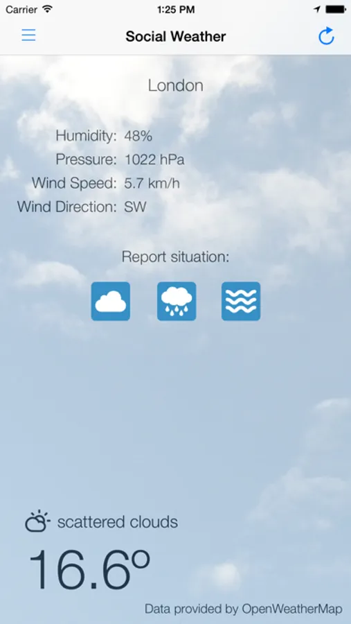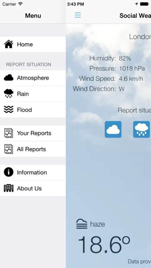 You can report weather in three categories: atmosphere, rain and flood. More weather categories will be added soon.