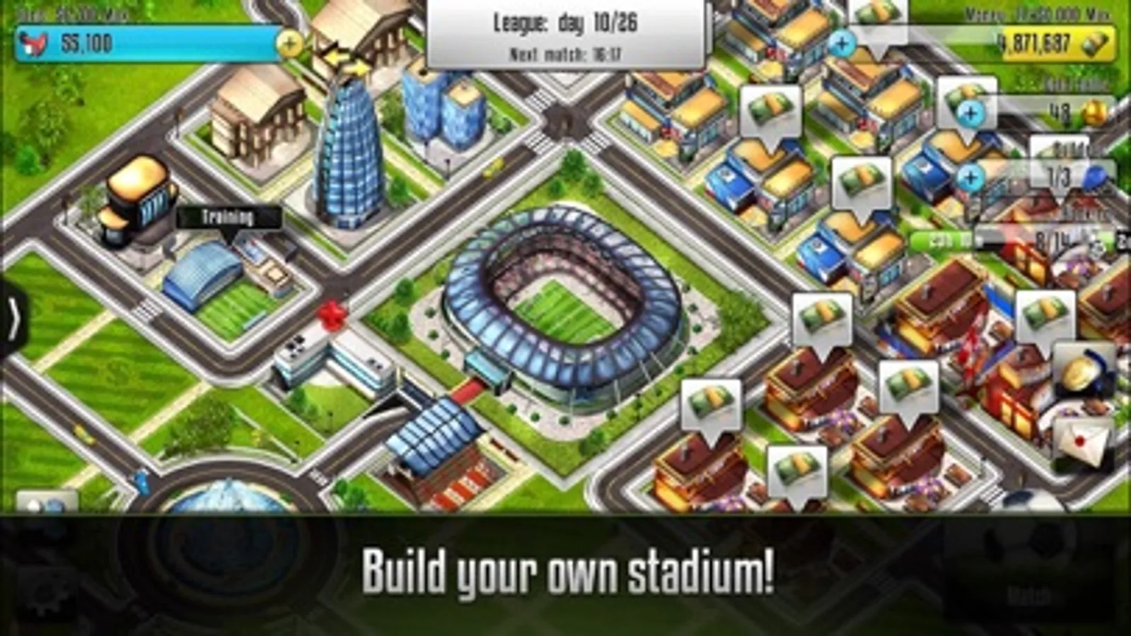 Create your own soccer team, train your players, prepare the best strategy and win the championship. Play against your friends or other players in many competitions and show off your management skills!