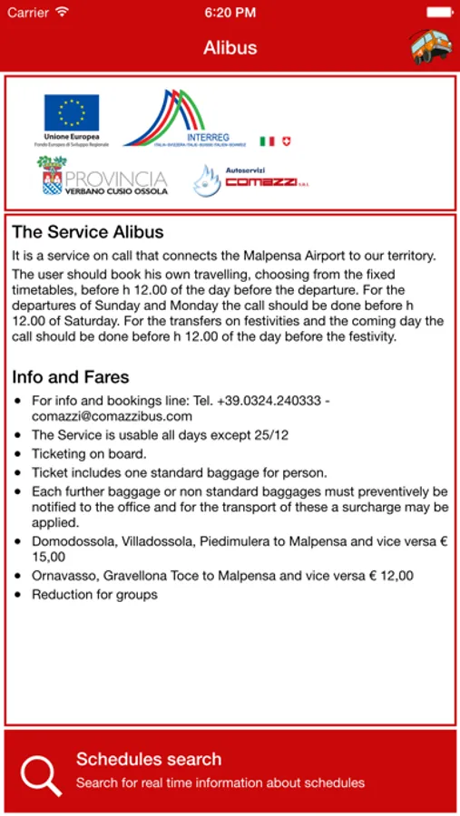 ALIBUS provides information on the use and timetable on the dialaride service supplied by the company Autoservizi Comazzi S.r.l., connecting Switzerland (Brig) and V.C.O. to Malpensa airport.